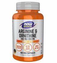 NOW Foods Arginine Ornithine (100 вег. капсул) аминокислоты Аргинин и ОрнитинАргинин и Орнитин - продукт сочетает в себе две незаменимые аминокислоты в одной капсуле. Аргинин является носителем и донатором азота, который необходим в синтезе мышечной тканиПроизводительNOW