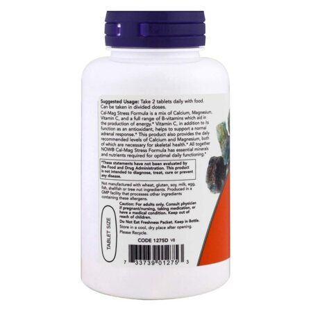 Now Foods Cal Mag Stress Formula – комплекс, содержащий важные минералы и витамины, которые необходимы организму для оптимальной работы. Основное предназначение препарата – противостояние различным видам стресса.Основу биодобавки составляют кальций и магний, дополняющие друг друга, витамин C, полный спектр витаминов В. Каждый из компонентов оказывает свое действие на организм.