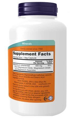 Магний NOW Foods Magnesium 400 мг (180 капсул) магния оксид, магния цитрат, магния аспартат можно купить в интернет-магазине Bodygold.ru в Екатеринбурге. Для оформления заказа по низкой и выгодной цене 2790 руб. свяжитесь с нами по телефону 8 (922) 188-14-42 или воспользуйтесь обратным звонком на сайте.