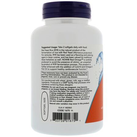 На что влияет Красный дрожжевой рис: Основным компонентом Red Omega является Красный дрожжевой рис. Это экстракт растения семейства Злаковых. Красный дрожжевой рис издавна входит в рацион питания народов Китая и Дальнего Востока. Механизм его получения – сбраживание белого риса с дрожжами Monascus purpureus. Красный дрожжевой рис содержит большое количество статинов растительного происхождения. Статины растительного происхождения блокируют работу фермента (редуктазы HMG-CoA) , отвечающего за синтез холестерина в крови. Таким образом, нашлось научное подтверждения статистики, которая свидетельствовала о низком уровне заболеваний сердечно-сосудистой системы, стабильности жирового обмена, связанных с повышенным содержанием липопротеидов, холестерина (атеросклероз, ожирение) народов Китая и Дальнего Востока. Применение препаратов на основе Красного дрожжевого риса является одним из факторов предупреждения риска появления атеросклероза, повышенного содержания холестерина и нарушения жирового обмена в организме человека. В 1999 году Школа медицины UCLA провела 12-недельное двойное слепое, плацебоконтролируемое исследование холестеринпонижающего действия красного дрожжевого риса в группе, соблюдающей определённую диету. Восемьдесят три здоровых человека (46 мужчин и 37 женщин в возрасте 34-78 лет) с высокими уровнями холестерина принимали красный дрожжевой рис или плацебо. Доза красного дрожжевого риса составляла 2400 мг ежедневно. Эту дозу они принимали как две капсулы два раза в день. Жиры крови у испытуемых измерялись на 8, 9, 11, и 12 неделях. Результаты показали, что концентрация холестерина значительно уменьшились между начальной и 8 неделями исследования, в котором использовали красный дрожжевой рис (от 254 ±36 мг/дл до 208 ±31 мг/дл), чего не наблюдалось у группы, лечившейся плацебо. Уровни холестерина ЛПНП и триглицеридов также уменьшились. Авторы исследования заключили, что «красный дрожжевой рис значительно уменьшает общий холестерин, холестерин ЛПНП, и концентрацию триглицеридов по сравнению с плацебо и обеспечивает новый подход к понижению уровня холестерина». В 1997 году исследование, проведённое в больнице Донгжимен (Пекинский университет традиционной китайской Медицины), которое проводилось в течение восьми недель на 446 пациентах, 324 из которых давали добавление красного дрожжевого риса, показало, что общий холестерин уменьшился на 22,7 %, а холестерин ЛПНП – на 30,9 %. Кроме того, вырос на 19,9 % холестерин ЛПВП ("хороший холестерин") и уменьшение на 34,1 % серологических триглицеридов. Авторы исследования заключили, что "традиционное китайское приготовление риса чрезвычайно эффективно в понижении повышенного серологического холестерина и триглицеридов". Природный статин, содержащийся в Красном дрожжевом рисе не имеет побочных эффектов и поэтому препараты Красного дрожжевого риса могут применяться регулярно, длительное время. Кроме нормализации уровня холестерина в крови, Красный дрожжевой рис (Red Yeast Rice) стимулирует обмен веществ и циркуляцию крови, восстанавливает функции селезенки и желудка, способствует пищеварению. Он активизирует функции организма, ускоряет послеродовое восстановление. Функциональные действия: –приводит к нормализации показателей вязкости крови, а также препятствует развитию тромбозов; –предупреждает раз