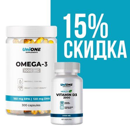 Omega-3 1000 мг от UniONE – добавка, содержащая омега 3 жирные кислоты (EPA и DHA) , является одной из самых важных добавок для здоровья. Должна быть включена в ежедневный приём каждого, кто ведёт здоровый образ жизни. Для изготовления капсул используется только высококачественный рыбный жир, полученный из мяса рыбы, а также выполняется высокая очистка сырья, обеспечивающая оптимальное содержание столь необходимых нам жирных кислот - ЭПК и ДГК.