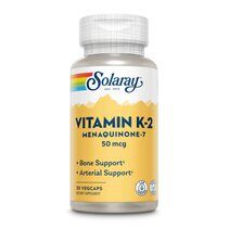 Solaray Vitamin K2 50 мкг (30 вегаских капсул) отдельный витамин КУкрепляет иммунитет, повышает антиоксидантную защиту организма. Положительно влияет на состояние костей, зубов, суставов, сердца, кровеносной и нервной системыПроизводительSolaray